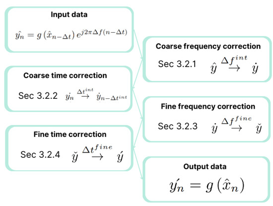 At this point, the entire correction in the frequency and time domain of the received signal is completed and applied to vectors. The diagram summarizing the individual steps is presented in Figure 2.
