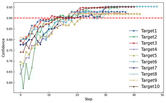 Initially, when the focal length is short, the PTZ camera mistakenly identifies both types of false targets as legitimate monitoring objects. However, as the focal length increases, the camera gains a clearer view of the targets’ details and characteristics. Gradually, it becomes apparent that the current target being tracked is a false one, as illustrated in Figure 8. This demonstrates the method’s ability to distinguish between genuine monitoring objects and deceptive false targets. Complete example is shown in Figure A1.
