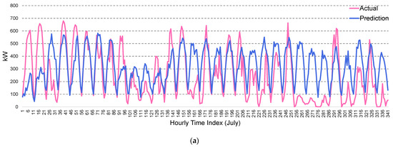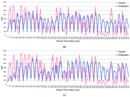 In particular, DL models have received much attention due to their structure and learning method, which are excellent for processing data with complex patterns [20,21,22,23,24,25]. Abdel-Nasser and Mahmoud [20] developed a PV power prediction model using deep long short-term memory (LSTM) networks, which captures temporal dynamics with high accuracy. Patel [21] proposed a solar irradiance prediction based on the exploration of LSTM and convolutional neural networks (CNNs) to overcome the challenges of model convergence and accuracy. Wen et al. [22] developed a novel multistep-ahead prediction scheme for PV power rate control using deep CNNs and stacked sky images, bypassing the need for additional time series models and exogenous variables for industrial suitability. Jiao et al. [23] proposed a novel DL architecture for solar irradiance prediction that integrates convolutional graph neural networks with LSTM to improve accuracy and reliability for distributed PV systems. Zameer et al. [24] proposed two DL models based on bidirectional LSTM (Bi-LSTM) and gated recurrent unit (GRU) to achieve superiority in short-term solar PV prediction over traditional methods such as lasso, ridge, elastic net, and SVM, highlighting the robustness and precision of DL. Rocha et al. [25] conducted an in-depth analysis using LSTM, Bi-LSTM, and temporal convolutional network (TCN) for predicting solar PV generation on a 1320 watt-peak (Wp) amorphous plant, demonstrating the superior performance of TCN in terms of accuracy for both short-term (15-minute) and long-term (24-h) predictions.