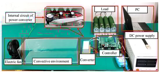 During the experiment, the temperature, including the device case temperature, the converter housing temperature and the ambient temperature, are measured by MF52 thermistors with an error of less than 1% and a thermal response time of less than 2 s. The current is measured by an MT9221 Hall effect sensor with an error of less than 2%. All the measurements are collected by the controller and sent to a PC for storage and analysis.