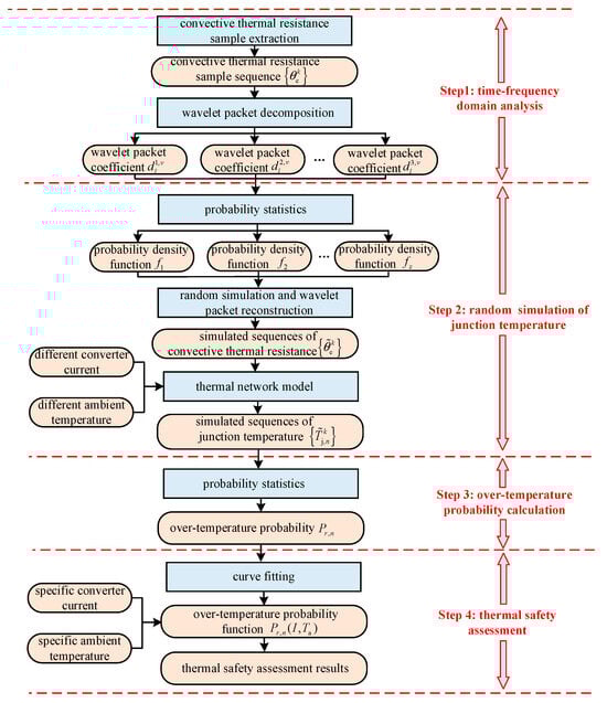 Based on wavelet packet transform and the Monte Carlo principle, a thermal safety assessment method for power devices in natural air-cooled converters is proposed, as shown in Figure 10. The proposed method consists of four main steps.