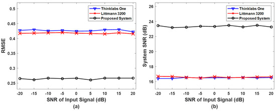 The comparable time domain output, SNR, and RMSE from Figure 9 and Figure 10 provide evidence that the proposed system demonstrates equivalent signal acquisitions compared to the commercial digital stethoscopes’ benchmark across relevant respiratory sound frequencies. In summary, the addition of the optimized denoising technique enabled the proposed system to surpass the commercial stethoscopes in both noise robustness, as measured by higher SNR, and signal accuracy, as measured by lower RMSE. This demonstrates the potential of the programmable multi-microphone array approach to balance noise suppression and lung sound fidelity through tailored filtering algorithms.