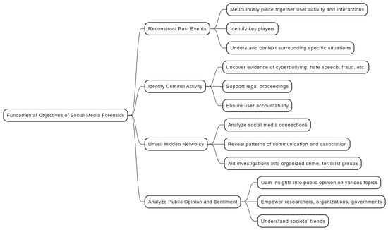 Figure 3 provides an overview of the fundamental objective of social media forensics, which revolves around utilizing the diverse digital evidence to: