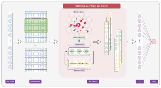 To better fit the SOH prediction curve, the experimental process of the ABC-BiGRU model is illustrated in Figure 10, primarily comprising the following four steps.