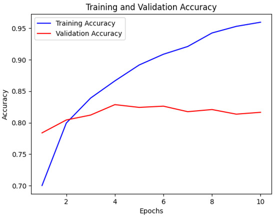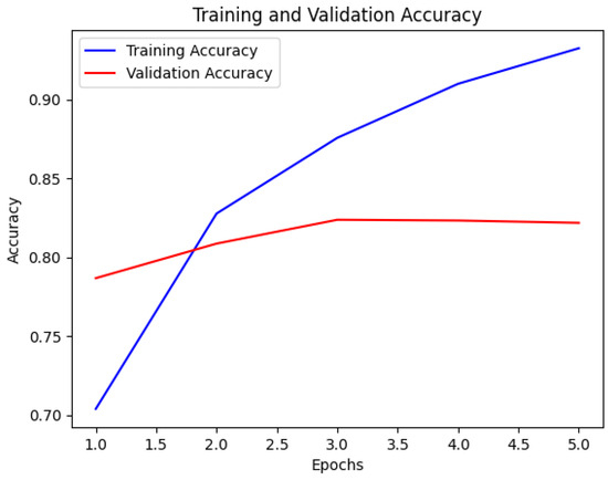 In terms of machine learning algorithms, Support Vector Machine (SVM) emerged as the most effective classic ML model, thus achieving an accuracy of 0.711. Multinomial Naive Bayes (MNB) closely followed SVM with an accuracy of 0.71. Logistic Regression (LR) and Random Forest (RF) demonstrated moderate performance, while Decision Trees (DTs) and K-Nearest Neighbors (KNNs) performed slightly lower, with an accuracy of 0.63 as shown in