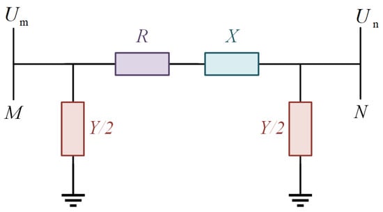 The model of transmission lines in power systems can be categorized into two types based on the length of the line: lumped-parameter equivalent model and distributed-parameter equivalent model. Low-voltage distribution lines, which are considered short lines, typically utilize lumped-parameter π-type equivalent circuit models, as illustrated in Figure 1.
