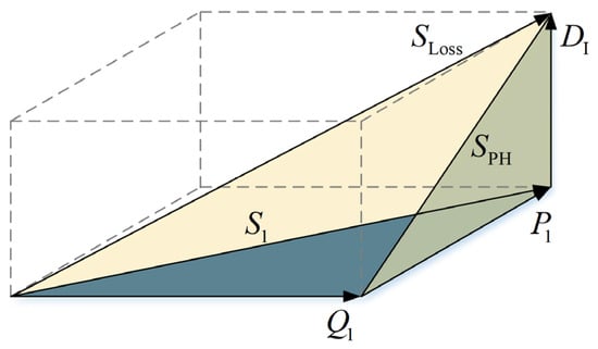 The power cubes of the active line loss power factor PFP, reactive line loss power factor PFQ, and harmonic line loss power factor PFH are presented in Figure 3. It represents the relationship between the decomposed individual powers on the vector.
