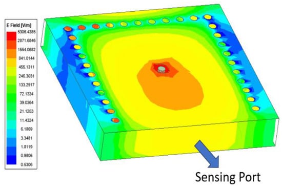 A SIW structure was integrated at the bottom of the unit cell to collect a very small portion of the incoming signal for sensing purposes. Figure 13 shows the electric field distribution inside the SIW structure with the Floquet port. This signal can be sensed by various means, like a Rotman lens with power detectors and a microprocessor unit.