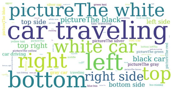 Furthermore, when providing natural language descriptions for videos, our data set utilizes a standardized language pattern, specifically detailing the object’s type, color, location, and direction of movement within a single sentence. For instance, “The blue truck at the bottom traveling from bottom to top”. Thus, as shown in Figure 4, our proposed UAVNLT contains 65 English words that detail the object’s category, color, location, and direction of movement.