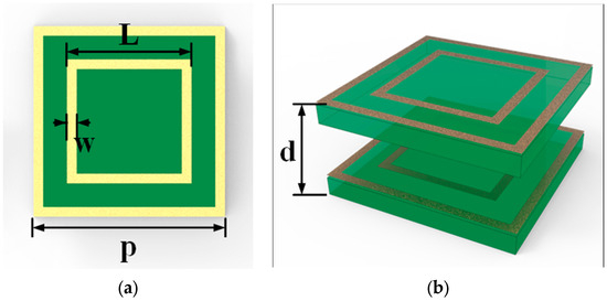 Structure of the metasurface unit. (a) Top view of unit; (b) side view of unit.