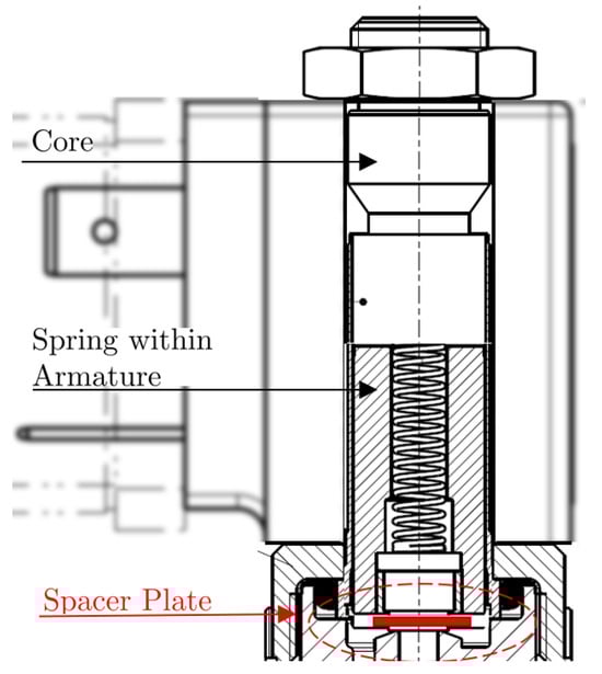 i characteristic curve, a nonlinear hysteretic course arises. The enclosed area represents demagnetization losses. As mentioned earlier, due to the pulsed switching behavior, eddy currents occur in the conductive core and armature, further broadening the enclosed area. The varying voltages consequently result in different currents, which, according to Equation (