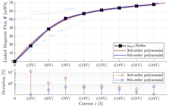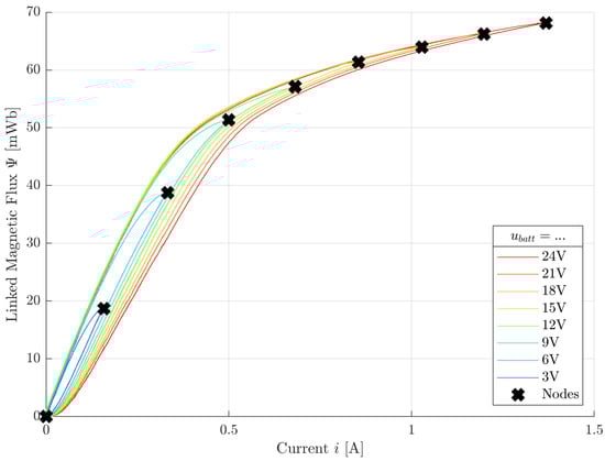 i characteristic curve is to be found to approximate the measured characteristics for all defined voltages. For this purpose, the respective flux maxima are used as nodes for interpolation including the starting point