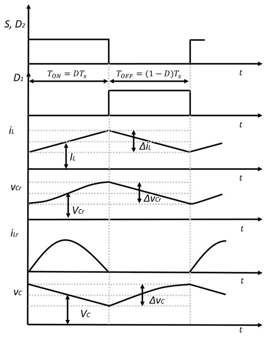The main waveforms are sketched in Figure 2, assuming that the transistor conducts exactly half of the resonant period. Continuous conduction mode (CCM) operation is assumed with respect to D1.