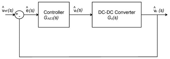 As the rational control-to-output transfer function previously determined is of second order, a type 3 amplifier is a suitable choice. The closed-loop small-signal model of the hybrid step-up converter is given in Figure 8 in its classical format. It consists of the control-to-output transfer function of the converter Gc(s) and the type 3 controller GAE3(s).