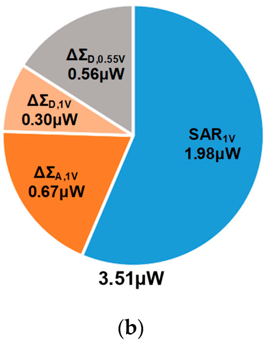 - Hu, J.; Li, D.; Liu, M.; Zhu, Z. A 10-kS/s 625-Hz-Bandwidth 65-dB SNDR Second-Order Noise-Shaping SAR ADC for Biomedical Sensor Applications. IEEE Sens. J. 2019, 20, 13881–13891. [Google Scholar] [CrossRef]
