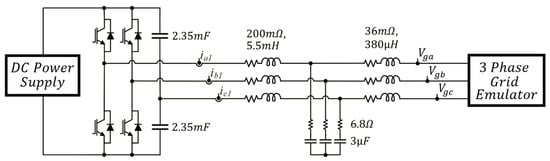 The inverter is connected to the experimental microgrid that the GSEI has [21] via an LCL grid filter. The grid inductance, which is estimated as ~300 μH/km [22], has been omitted as it is several orders of magnitude smaller than the output inductance of the LCL filter due to the short length of the microgrid. Figure 11 also shows the values of the implemented LCL filter.