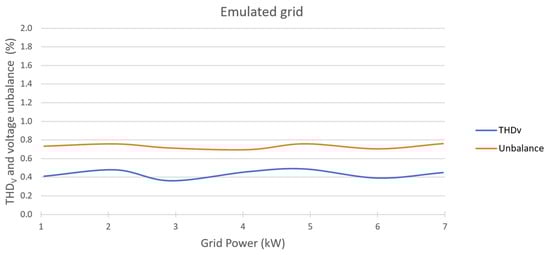 Figure 18 shows the measured total harmonic distortion (THDV) and the voltage unbalance on the emulated grid, for different power levels.