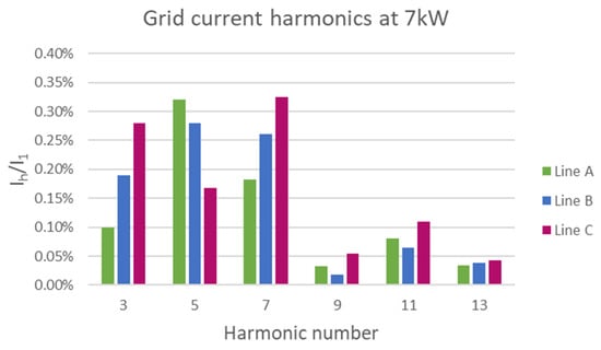 Grid current harmonics for B6 inverter at 7 kW.
