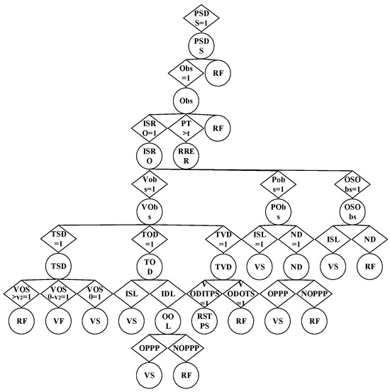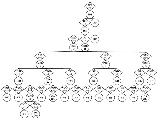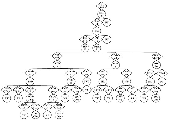 Autonomous vehicles enter the behavior tree decision model after meeting the access conditions of each scenario. The behavior tree models for the three scenarios are shown in Figure 7, Figure 8 and Figure 9. The meanings corresponding to the symbols in the behavior tree are shown in Table 2.