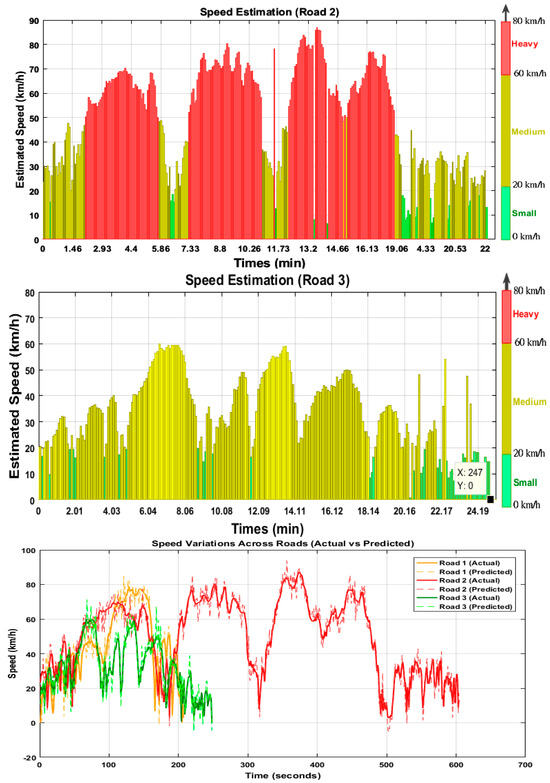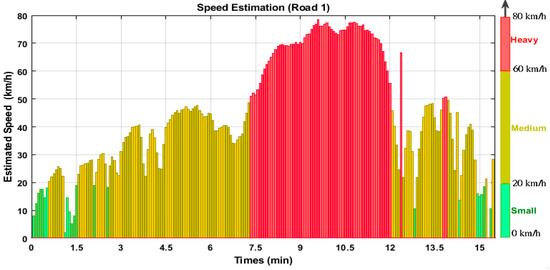 To predict the future speed of a vehicle under varying traffic conditions, the formula applied in Equation (10) can be applied to determine the estimated speed VEST is as follows: