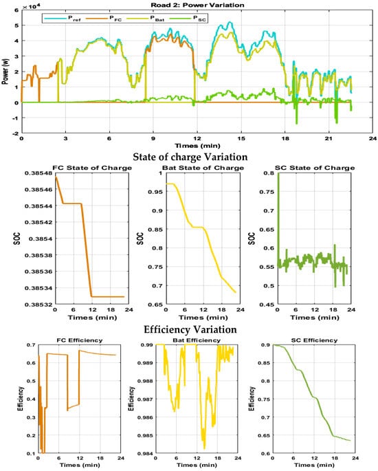 In accordance with the constraints SOCFC, SOCBat, SOCSC > SOCmin and Pdemand = PFC + PBat + PSC