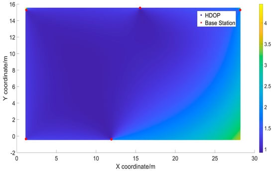 The smaller the HDOP value, the more ideal the geometric distribution of the base station and the higher the positioning accuracy. On the contrary, the larger the HDOP value, the greater the amplification of the distance measurement error by the geometric layout between the tested node and the base station and the lower the positioning accuracy.