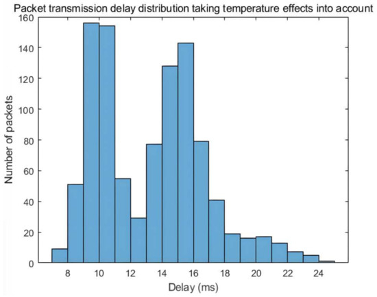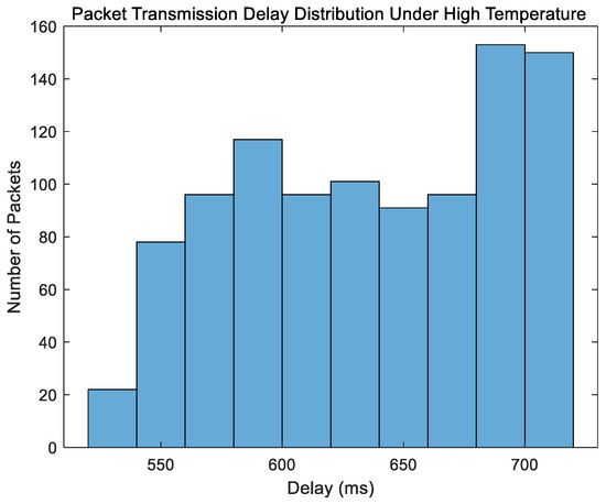 Third, we studied the impact of external environmental factors on transmission delay and plotted the distribution of group transmission delay considering the effect of temperature. Under the influence of the default ambient temperature, the average transmission delay is very small, as shown in