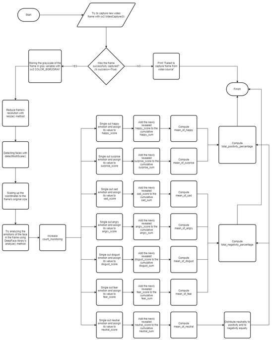 Flowchart of emotion monitoring and final computations of total positivity and total negativity.