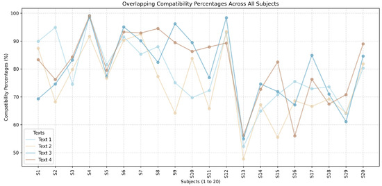 Average measured compatibility for each text.