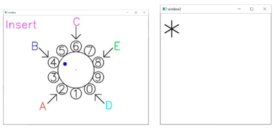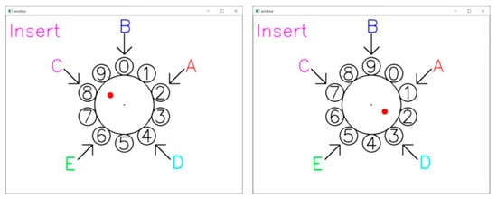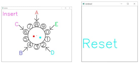 As shown in Figure 3, an over-the-air virtual dial pad is displayed on the screen, which can be operated by the user through Leap Motion or Media Pipe utilizing free rotation of the index finger (or other fingers) in any direction. Unlike traditional dialing methods, the system gives different fingers unique functions such as insert, delete, and reset. The user uses these fingers to enter a four-digit PIN code at each of the five input position points (A through E). It is worth noting that the position of the position points (A to E) changes randomly each time the PIN is entered, increasing the security of the system.