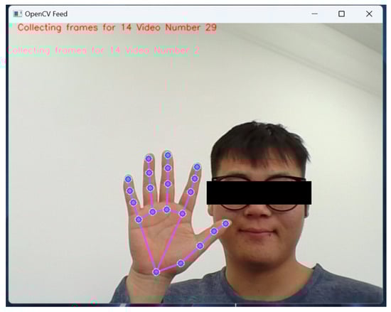 Shown in Figure 14 is one instance of hand feature collection of the user under the Media Pipe-based camera. We fed the collected user feature data into the model for 800 iterations.