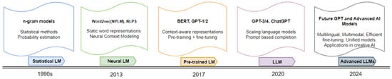 LLMs such as OpenAI’s GPT-4 (https://chatgpt.com, accessed on 29 December 2024), Google’s Gemini (https://gemini.google.com/app, accessed on 29 December 2024), Google’s Bidirectional Encoder Representations from transformers (BERT) (https://github.com/google-research/bert, accessed on 29 December 2024), and Denoising Autoencoder from transformer (BART) (https://huggingface.co/docs/transformers/model_doc/bart, accessed on 29 December 2024), which is a transformer-based model introduced by Facebook, are at the forefront of Artificial Intelligence (AI) research, revolutionizing how machines understand and generate human language. These models process extensive datasets covering a wide spectrum of human discourse, enabling them to perform complex tasks including translation, summarization, conversation, and creative content generation [1,2,3,4,5]. Recent advancements in this field, driven by innovative model architectures, refined training methodologies, and expanded data processing capabilities, have significantly enhanced the ability of these models to deliver nuanced and contextually relevant outputs. This evolution reflects a growing sophistication in AI’s approach to Natural Language Processing (NLP), positioning LLMs as crucial tools in both academic research and practical applications, transforming interactions between humans and machines [5,6,7].