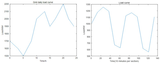 Drawing on Ref. [13], the original daily load data of a regional power grid were investigated and analyzed. The original daily load curve, as depicted in Figure 2, was obtained through MATLAB (2020a) simulation verification.
