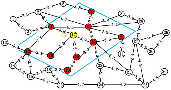 - Constraints on the service scope of electric vehicle charging stations:where NEVCS_m represents the number of nodes encompassed within the influence range of the m-th EVCS.