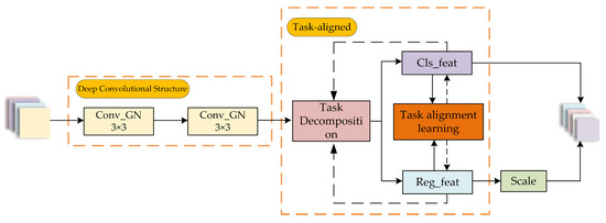 To tackle these challenges, this paper introduces a novel detection head called the TADDH. TADDH aims to optimize the design of the model’s detection head, achieving a reduction in the parameter count while enhancing detection performance. Firstly, to decrease the parameter volume, TADDH introduces a deep convolutional structure during the image information extraction phase, which integrates the convolutional layers, group normalization layers, and activation functions. This design not only enhances the model’s ability to learn complex features but also improves its training stability and its adaptability to varying batch sizes through Group Norm. Compared to the original detection head, which consists of two 3 × 3 convolutions and one 1 × 1 convolution, TADDH’s convolutional structure significantly reduces the parameter count by concatenating two deep convolution modules while simultaneously improving the feature extraction capabilities.