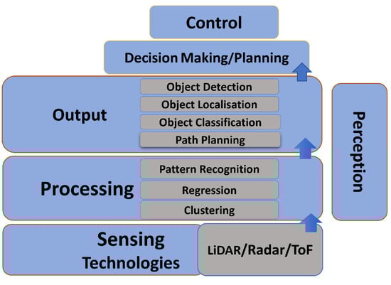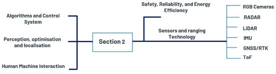 Contributions in academia across different domains related to the design and manufacturing of autonomous forklifts have propelled the investigation and advancement of this technology. In this section, the authors provide an overview of such a system’s key building blocks, with the main emphasis on sensing and ranging technology.