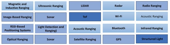 Numerous ranging technologies exist, each defined by its unique principles and practical uses. Some typical varieties of ranging technologies are as shown in Figure 2. Below are the most prevalent sensors used in perception systems.