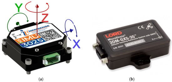 (a) IMU—MEMSense; (b) IMU—LORD MicroStrain sensing system.