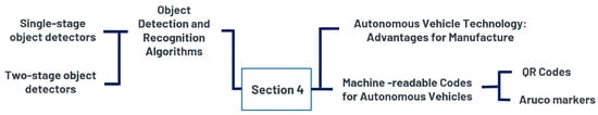 This paper is structured as follows: Section 1 introduces the focus and objectives of the research, providing an overview of the current advancements in autonomous forklifts. Section 2 reviews related work, highlighting key academic contributions and solutions for developing autonomous vehicle prototypes. Section 3 explains the architecture of autonomous vehicle components, detailing their perception, localization, planning and control systems. Section 4 focuses on machine vision and object detection techniques, emphasizing models used in autonomous forklifts and deep learning-based detection methods, respectively. Section 5 examines industry applications and major manufacturers of autonomous forklifts. Finally, the discussion and conclusions are presented in Section 6 and in Section 7 respectively.
