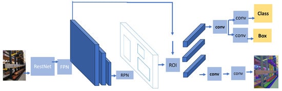 - He, K.; Gkioxari, G.; Dollár, P.; Girshick, R. Mask R-CNN. In Proceedings of the IEEE International Conference on Computer Vision, Venice, Italy, 22–29 October 2017; pp. 2961–2969. [Google Scholar]