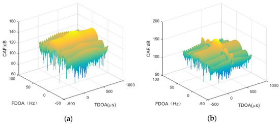 - Ouyang, X.; He, Q.; Yang, Y.; Wan, Q. TDOA/FDOA Estimation Algorithm of Frequency-Hopping Signals Based on CAF Coherent Integration. IET Commun. 2020, 14, 331–336. [Google Scholar] [CrossRef]