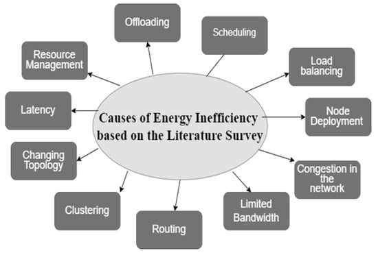 This section discusses the various factors that contribute to increased power consumption in IoT networks, drawing from the comprehensive analysis of related works presented in the Results section. Power inefficiency is a critical concern in IoT systems, as it directly impacts device longevity, network reliability, and operational costs. A thorough understanding of the underlying factors driving excessive energy consumption is essential for developing effective energy management strategies. Based on the literature survey, the causes of power inefficiency are categorised into eleven primary technical issues, each playing a substantial role in determining the overall energy performance of IoT systems. Numerous technical issues can lead to power inefficiency in IoT systems. Addressing these issues is crucial for minimising energy consumption and enhancing the operational efficiency of IoT networks. Based on the result analysis in the previous section, this discussion highlights eleven common technical issues that impact energy consumption in IoT environments, as illustrated in Figure 3.