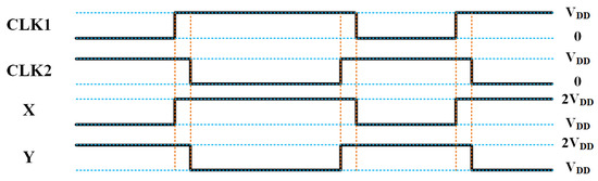 Clock scheme of the MMCP and voltage of nodes X, Y.