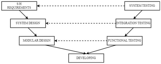To define the hardware and software requirements along with the payload design and select the suitable cameras, we used the V-model software design methodology, which is a graphical representation of a system development life-cycle [15]. The V-model summarizes the main steps in conjunction with the corresponding deliverables at each stage and the way to prove that all the requirements will be satisfied. It describes the activities to be performed and the results that must be produced during device development. In short, the left side of the “V” represents the breakdown of requirements and the creation of system specifications. The right side of the “V” represents the integration of parts and their validation [16]. In this scenario, we modified some stages to match the satellite development and reduce the complexity of the V-model. Figure 1 shows the V-model designed for this project.