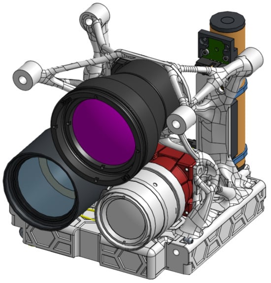 To determine the most suitable camera for integration into the payload, we established specific preliminary requirements recognizing the pivotal role of the camera sensor as the core component. Our selection process was then guided by these criteria to ensure seamless interaction and optimal performance within the CubeSat system. Table 1 shows the most relevant requirements for selecting the suitable camera. Initially, we based our search on using the same camera model for both wide-field and telephoto cameras, but with different lens pairings. At the preliminary design stage, we did not calculate specific lens–sensor pairings.