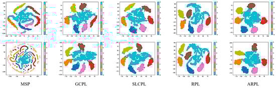 To assess the efficacy of CDLoss for OSR, two types of frameworks, MSP (maximum Softmax probability) [35], a Softmax framework, and GCPL [8], RPL [9], ARPL [10], and SLCPL [11], prototype-based derived approaches, are taken as baseline algorithms. The performance was assessed using AUROC, OSCR, and accuracy.