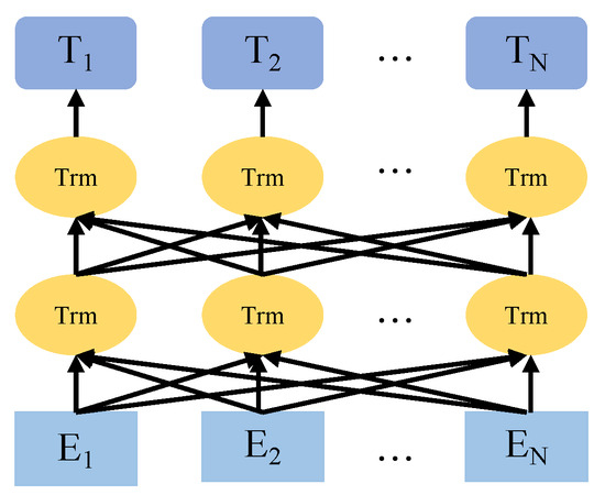 Transformers [25] are architectures based on the self-attention mechanism, allowing the model to compute the attention each element in a sequence pays to all other elements. This architecture is primarily used to solve sequence-to-sequence tasks. BERT [26], which was introduced by Google AI, is a pre-trained language model based on the Transformer architecture. Its key innovation lies in using deep bidirectional representations during pre-training, which are later fine-tuned for various downstream language processing tasks. This method provides a powerful solution for addressing complex natural language understanding challenges, with the model structure illustrated in Figure 3.
