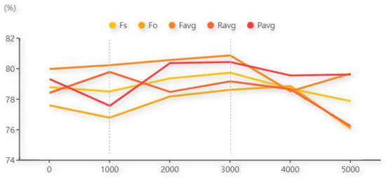 To evaluate the model’s stance detection performance under varying amounts of sentiment data, we conduct six comparative experiments, with sentiment data set at 0, 1000, 2000, 3000, 4000, and 5000 data volumes. The results are presented in Table 4 and Figure 11.