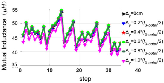 When the receiving coils migrated along the Y-axis, the mutual inductance is shown in Figure 7.