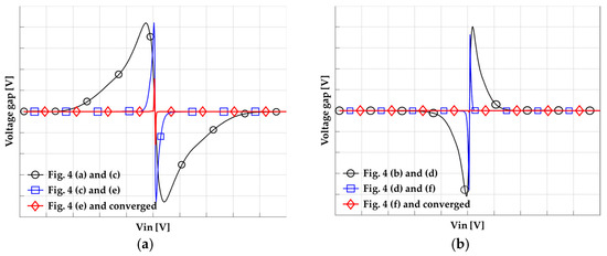 Voltage gap between the next iteration for (a) the inverter in forward and (b) the other inverter in inverse in the dynamic latch.